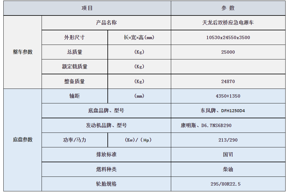 东风天龙后双桥应急电源车